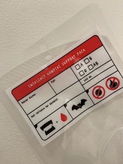 ドリンクバッグは、あの輸血パックをモチーフにした面白いデザインです!
