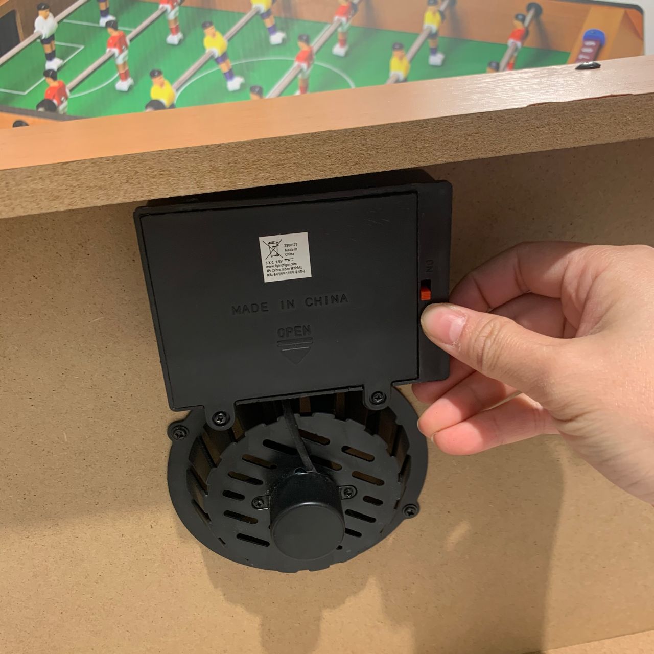ここに電池を入れてスイッチをONにするとエアーが出る仕組みになっています!