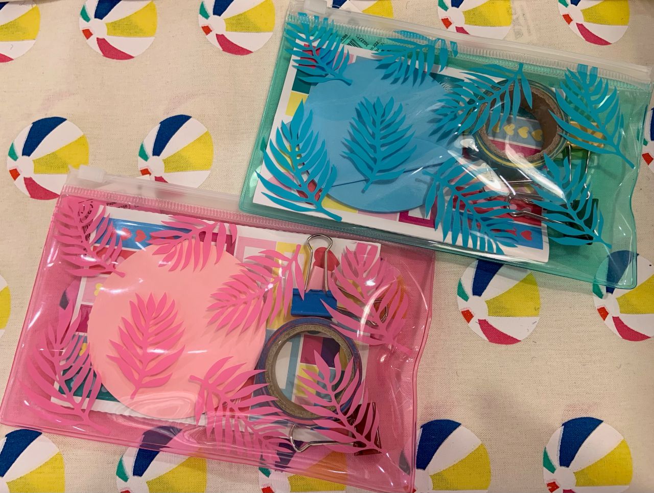 右:ペンケース(サングラス・魚・サーフボード)¥200(税込¥220)