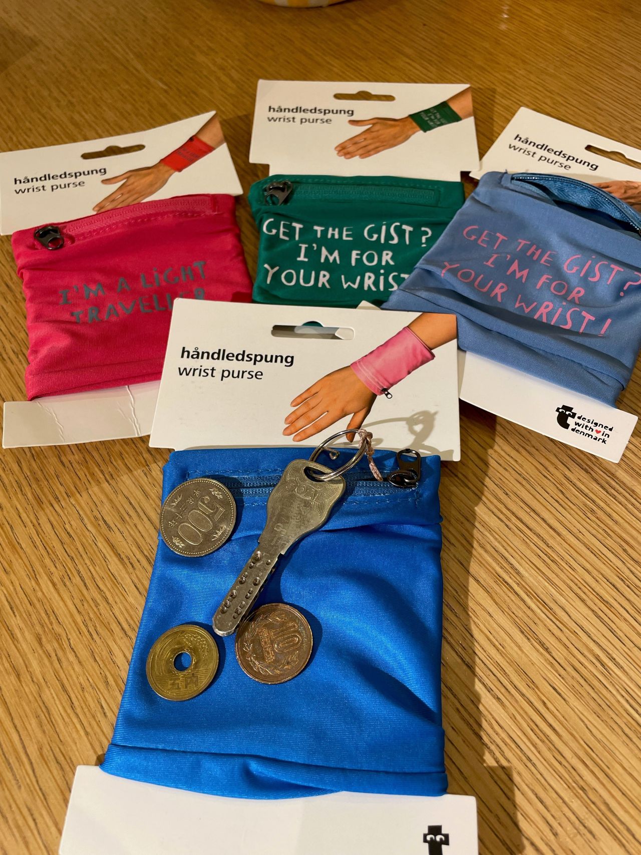 腕に着けられるポーチ