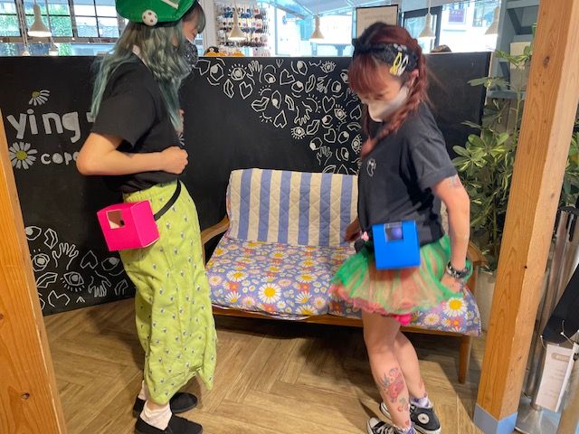 ①プレイヤー2人が、付属しているベルト付きの箱に