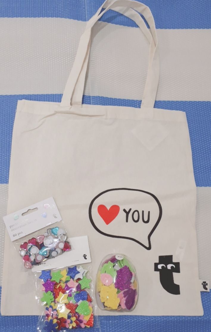 今回使用するのは♡YOUのMr.Tのトートバッグとキラキラのシールです☆