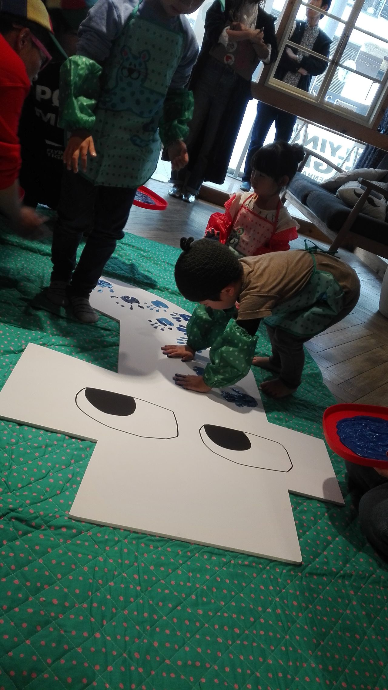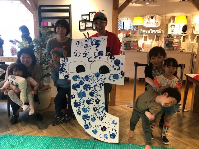 今回のHand Print Art イベントでは、「青」をテーマカラーとし、事前にご応募頂いた方の中から選ばれた4名のキッズたちが、サポート役のスタッフとともに、世界に一つだけのアート作品を作り上げました。
