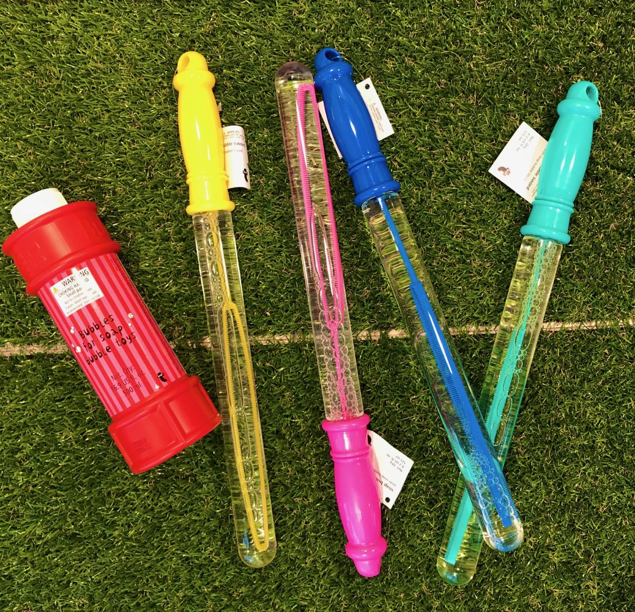 スタッフが持っているシャボン玉メーカー以外にも外遊びグッズ多数取り揃えております。