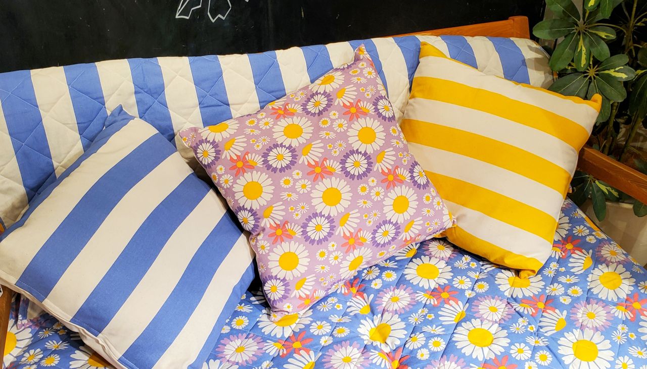 現在店内の商品はマーガレットモチーフの商品や涼しげなストライプ柄の商品など