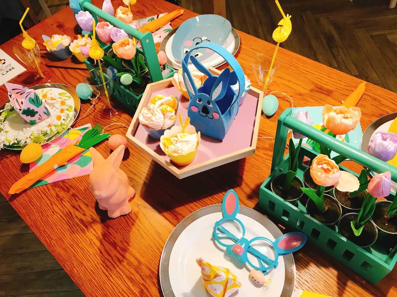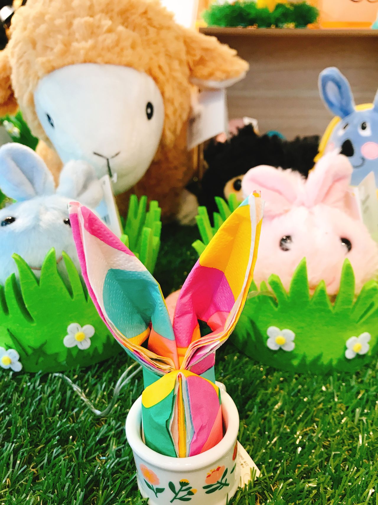 下の画像の中にナプキンで作ったウサギが隠れています。