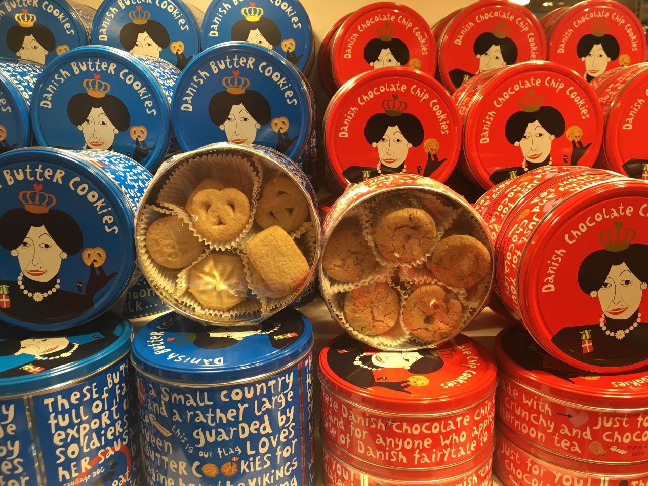定番商品の大人気青缶のバタークッキーと赤缶チョコチップクッキーです。