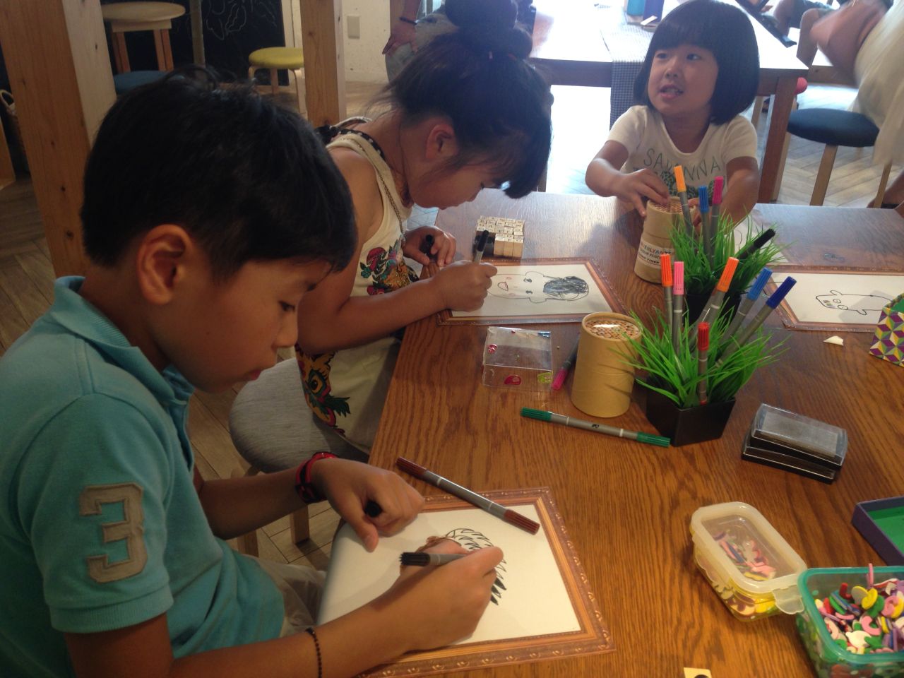 ペンやシールを使ってカラフルに・・・