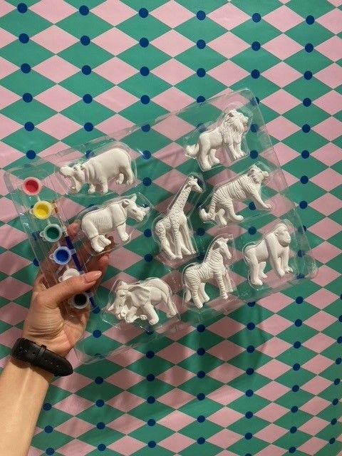 実はこちらの商品、白い動物型のキャンバスに付属の絵の具を使って