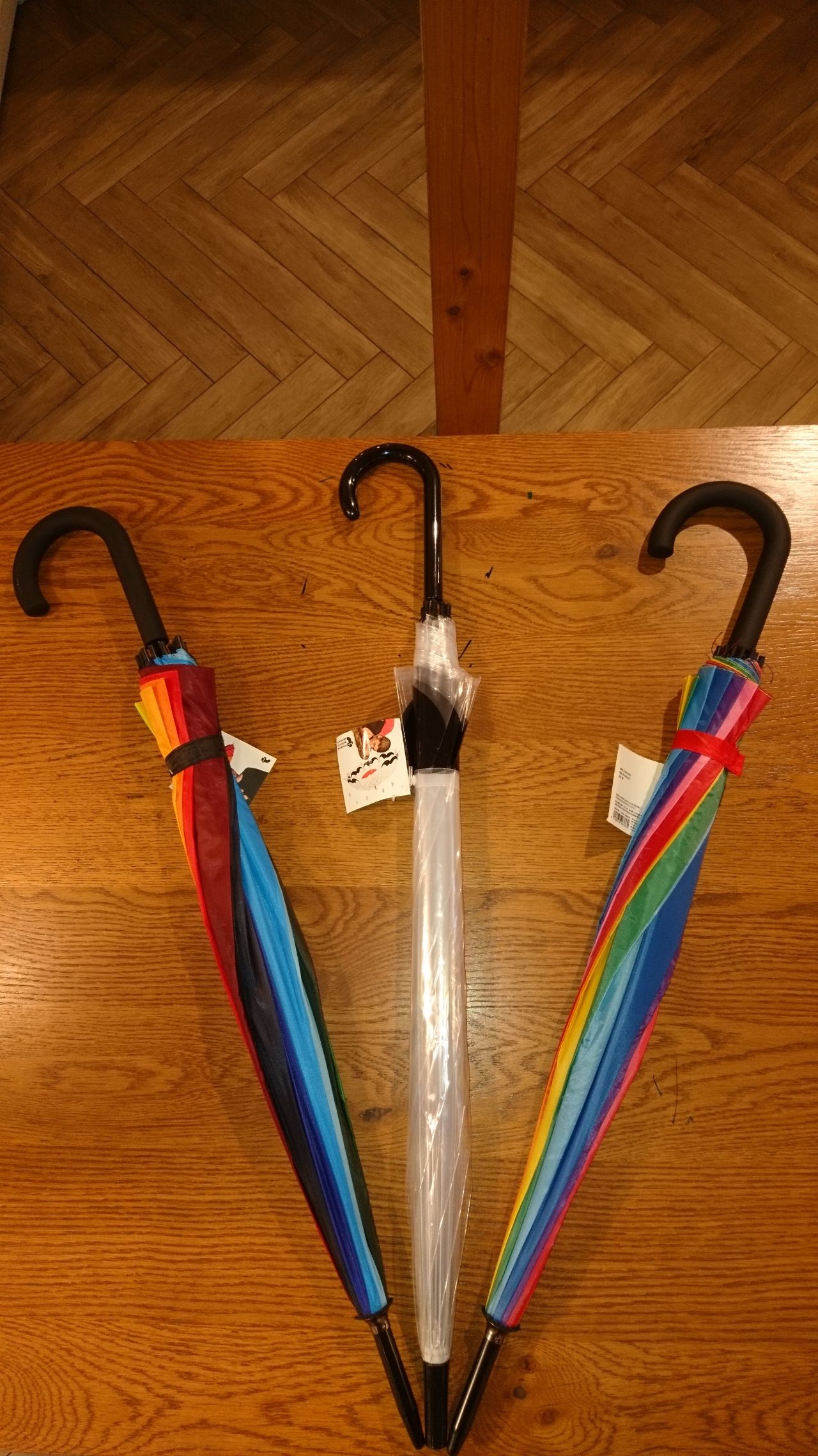 レインボー傘2種類とヒゲ傘です!各1000円(税抜)