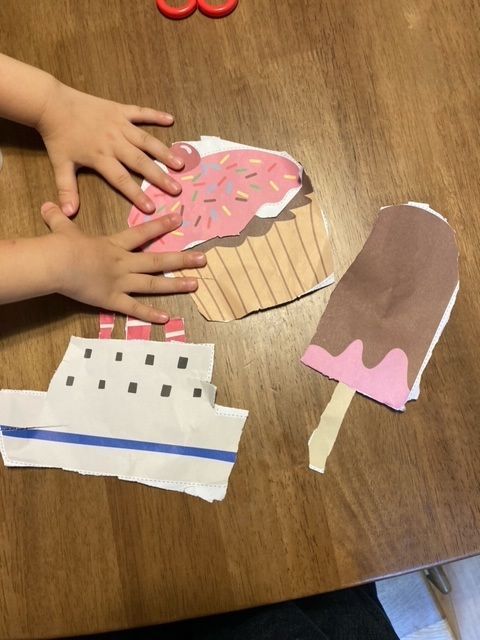 カップケーキや船は、パーツごとに切って、テープで貼ってみました