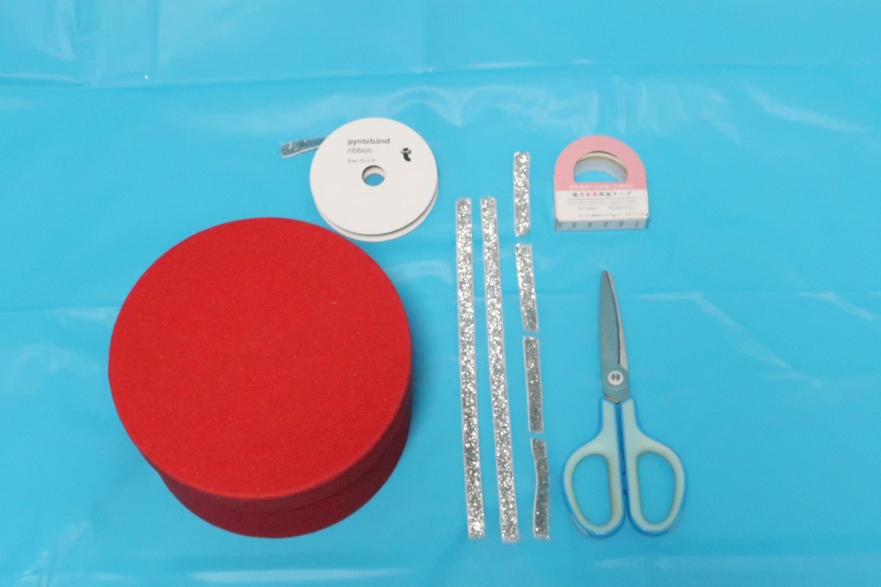 ①細いリボンを蓋の直径+ふち部分の長さにカット(2本)