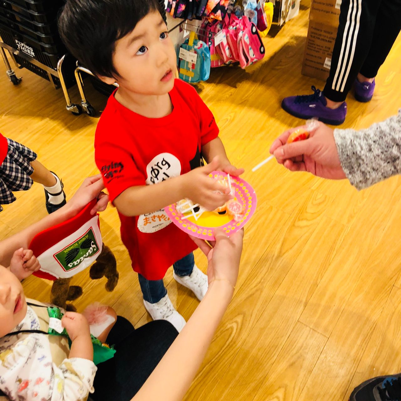 元気よく挨拶が出来たら、次のお仕事はお菓子配りです(^^)