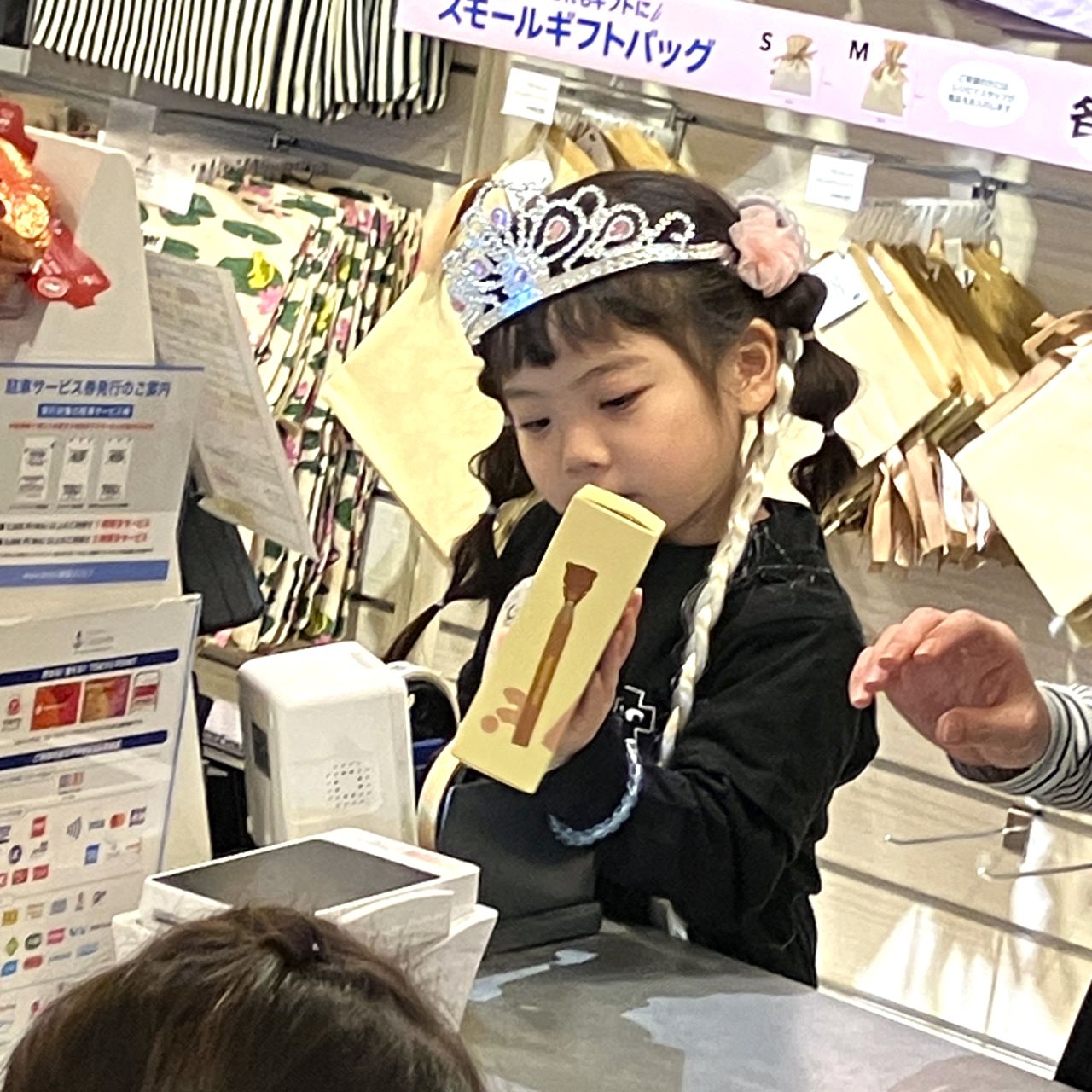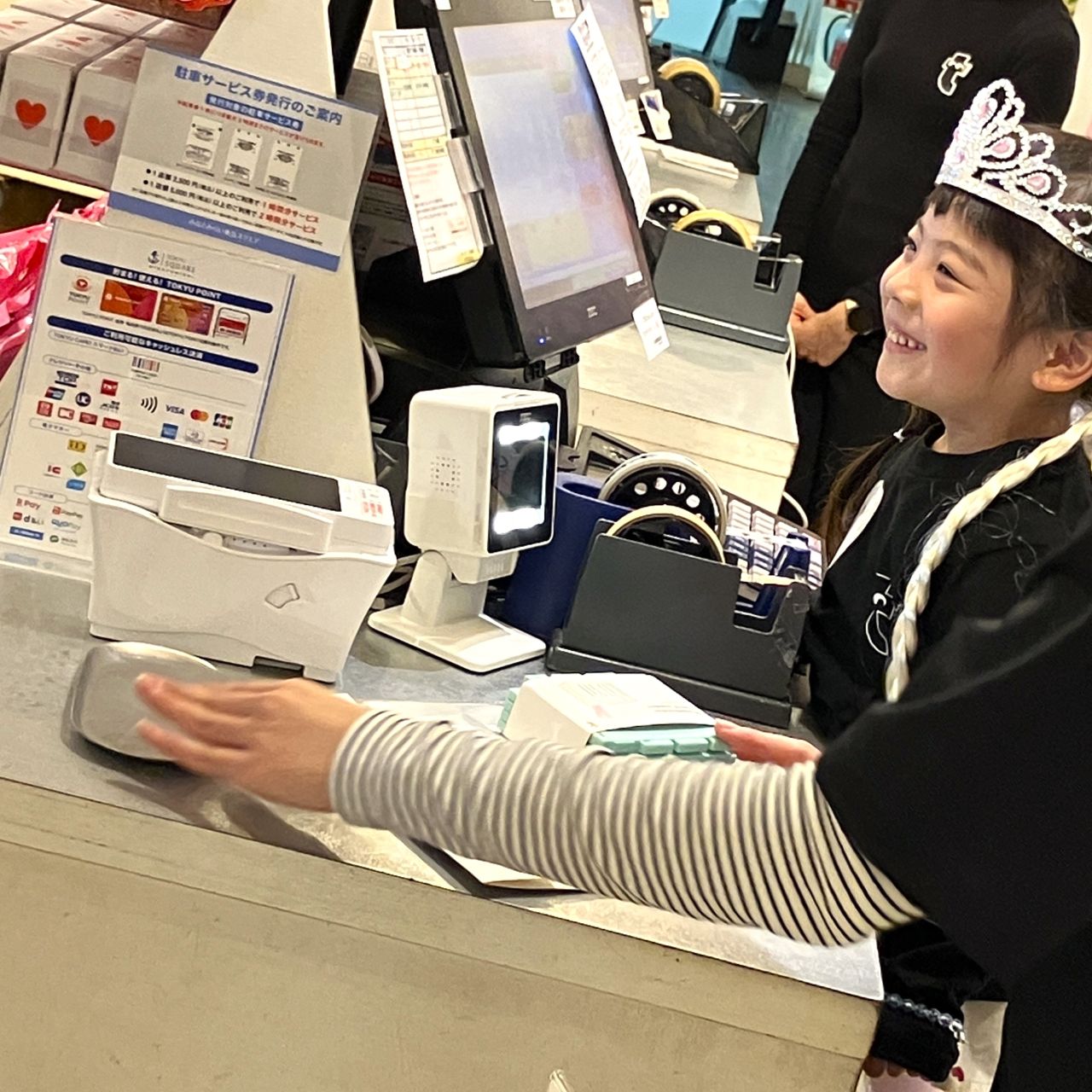 最初は緊張していましたがすぐに慣れてきて、大きな声で「いらっしゃいませ!」を言うことができました!