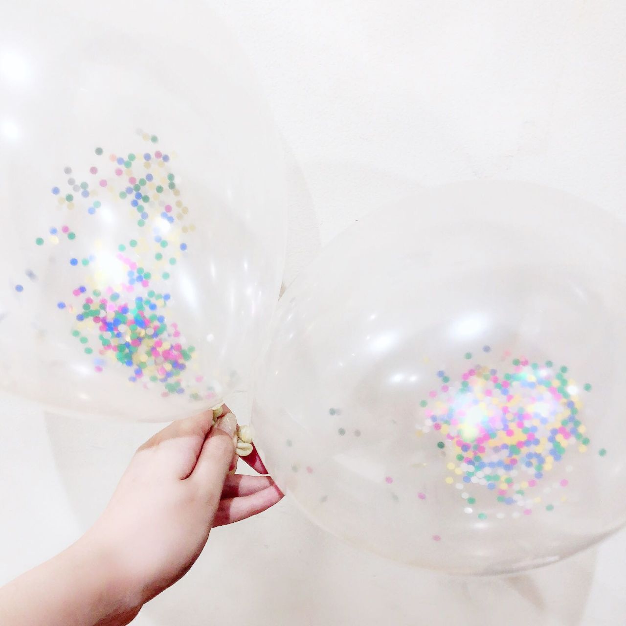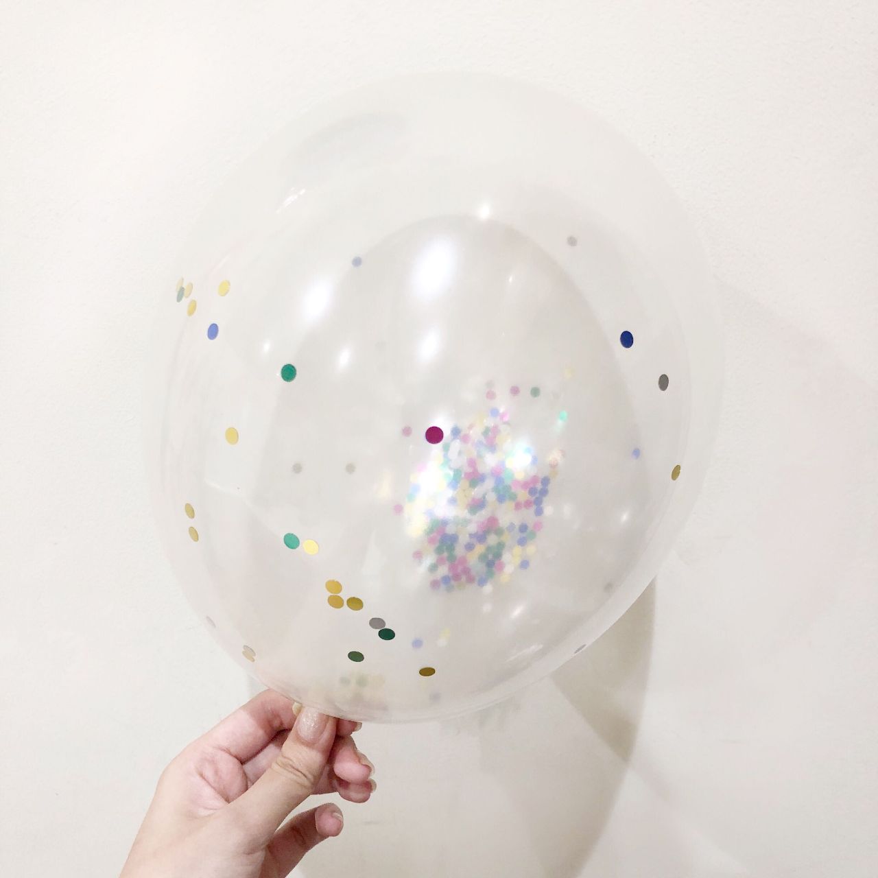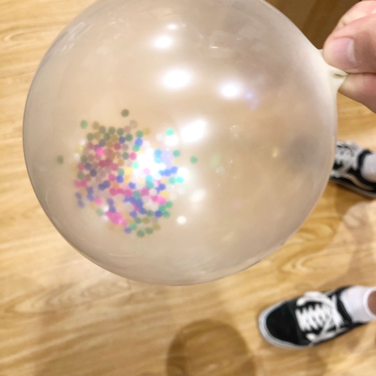 透明なバルーンにコンフェッティを入れて膨らませたら……………
