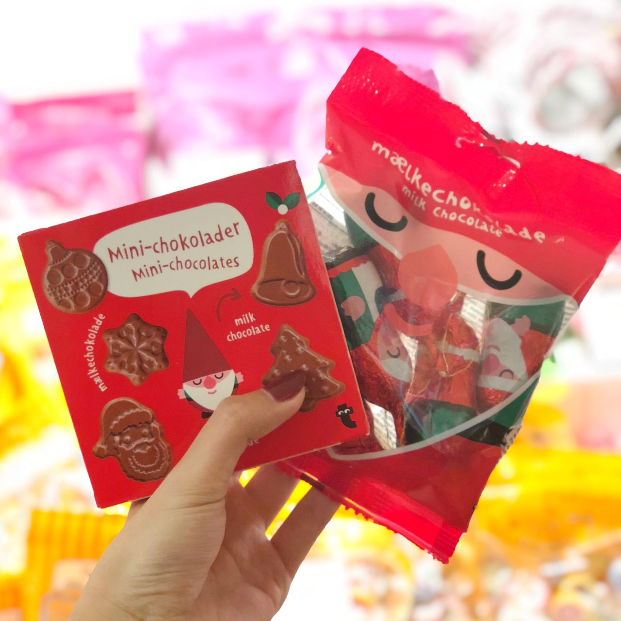 左側の赤い箱のものは中にミニサイズのチョコレートが入っていて、