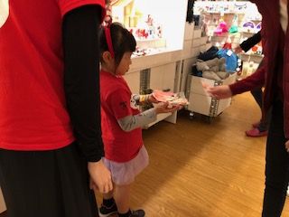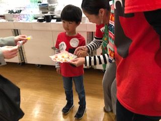 最初は2人一緒にお菓子のサンプリング!!たくさんのお客様にキャンディを配ってくれました〜!