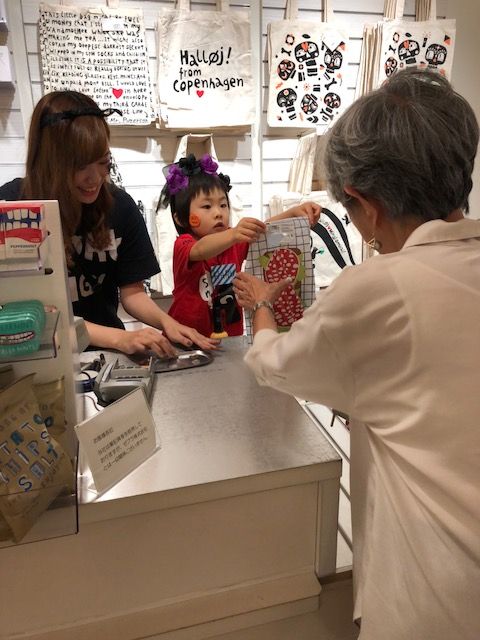 バーコードをうったり、商品を袋に詰めてお渡ししたり…そして笑顔でご挨拶!