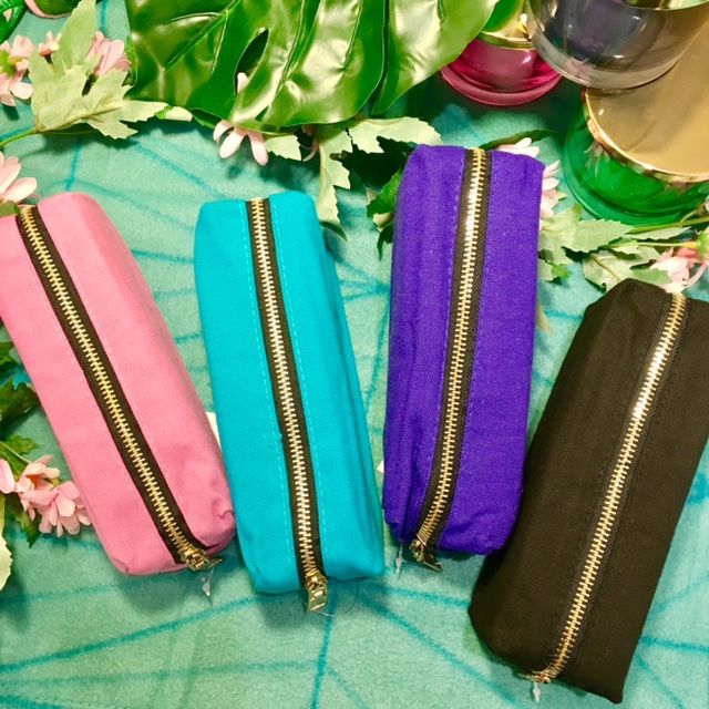 ゴールドのジッパーがオシャレ!ペンをたくさん収納でき、出し入れしやすいデザインです!