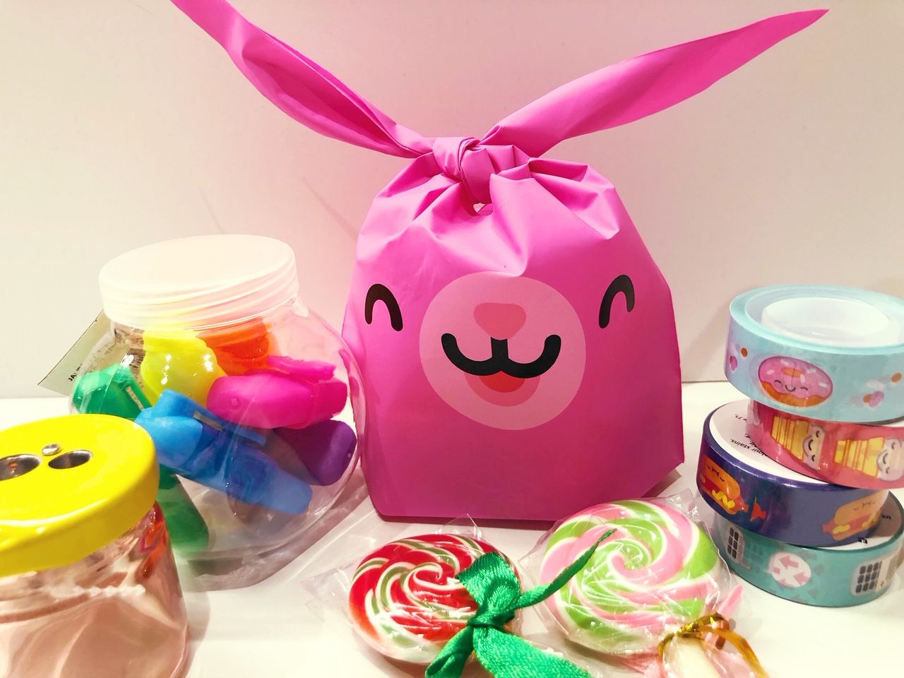 テープや消しゴムなど小さな文房具をラッピングして