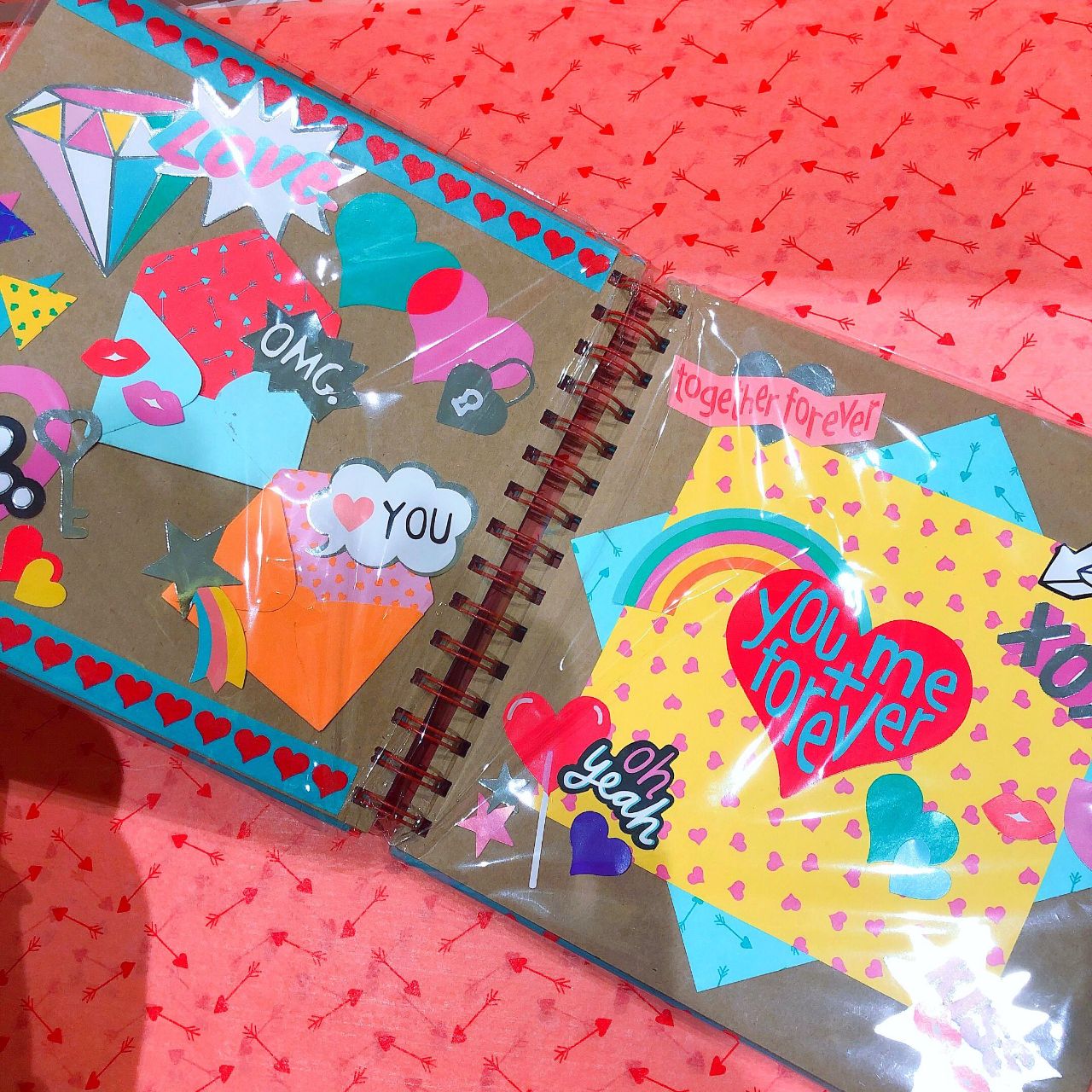 こちらのスクラップブック、シールなどのデコレーションセットが中に入っているので簡単に可愛く作れちゃいます♡