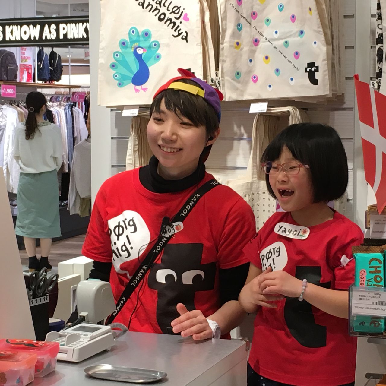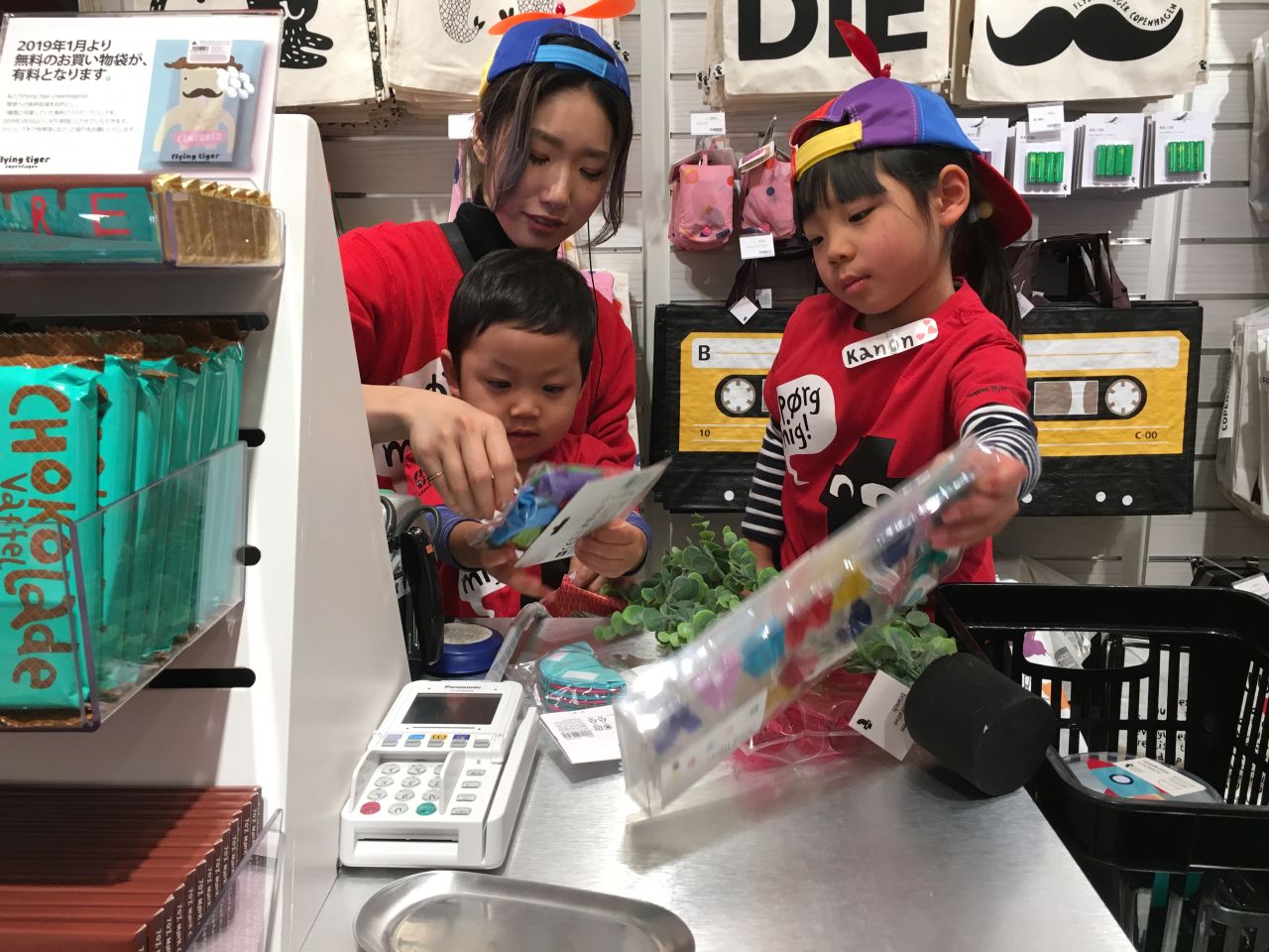 まずお子様にとっても人気なレジ体験!みんなスタッフ顔負けの接客をしてくれています!