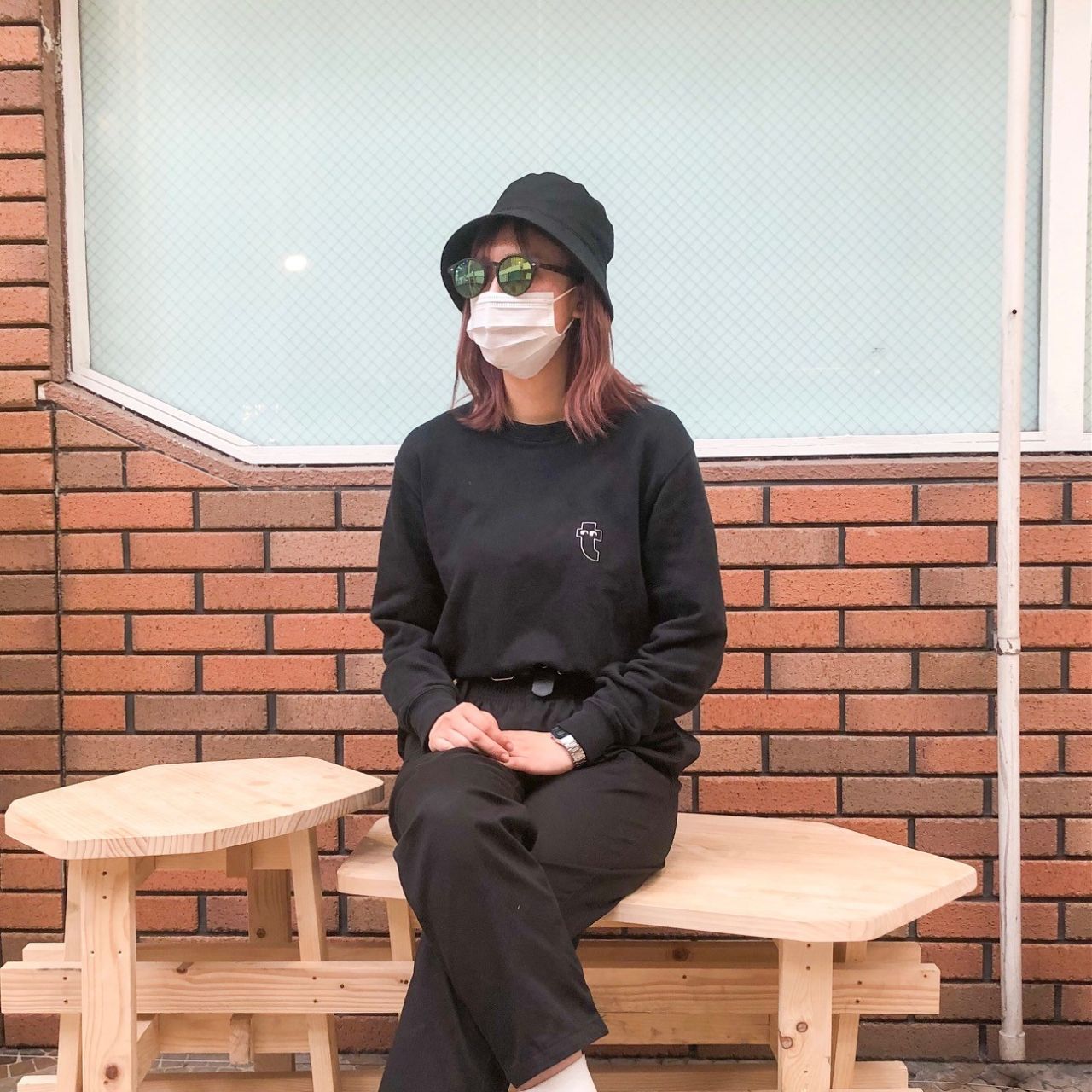 そんな時におススメなのがこの黒いバケットハット600円(税込み660円)。