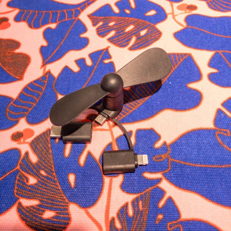 そんなときは、スマートフォンに扇風機を挿しちゃいましょう!!