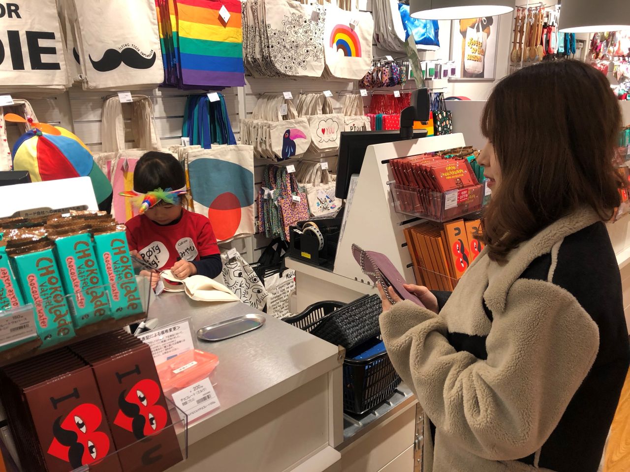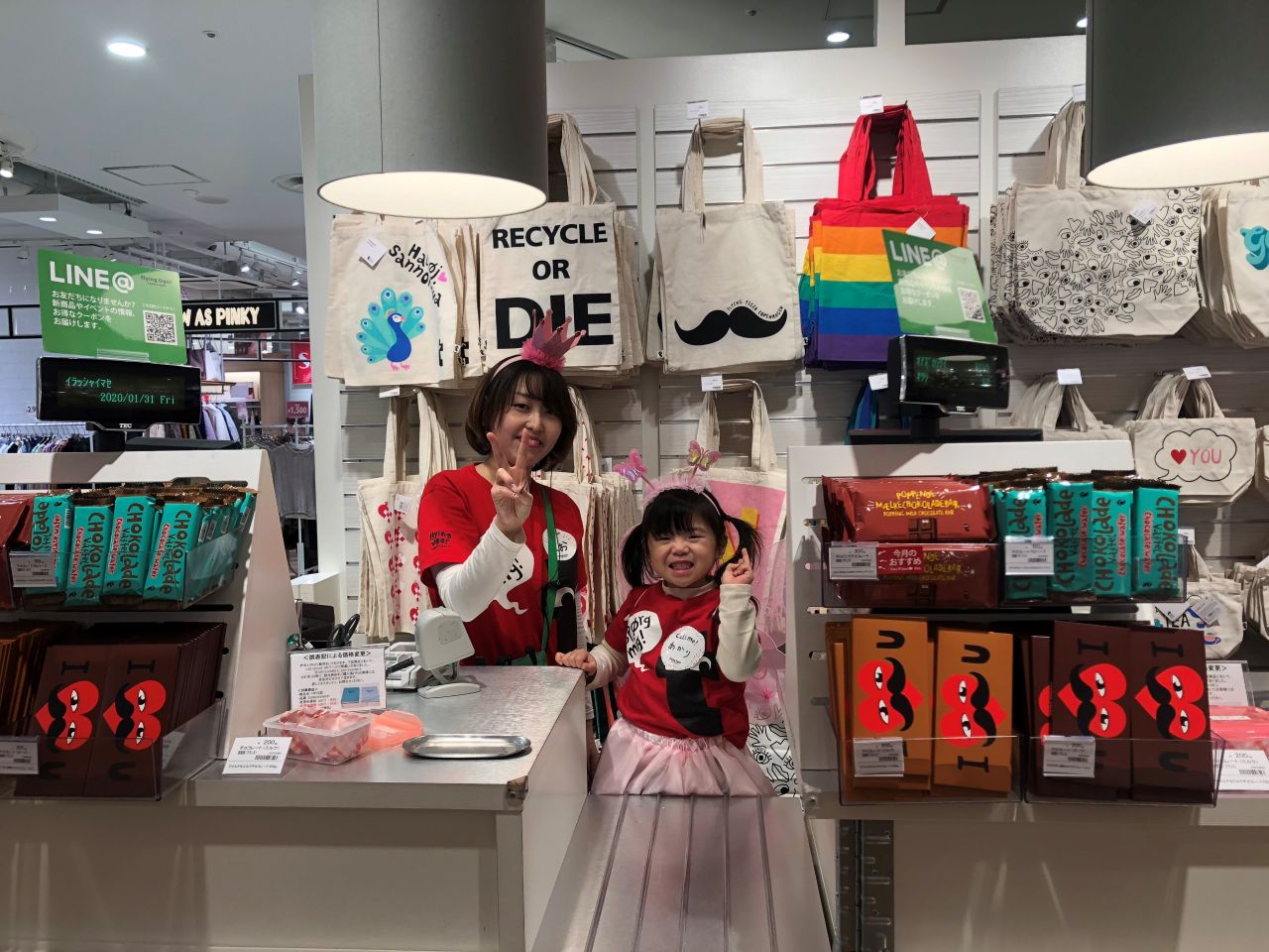 最初にレジ対応に挑戦したあかりちゃん、