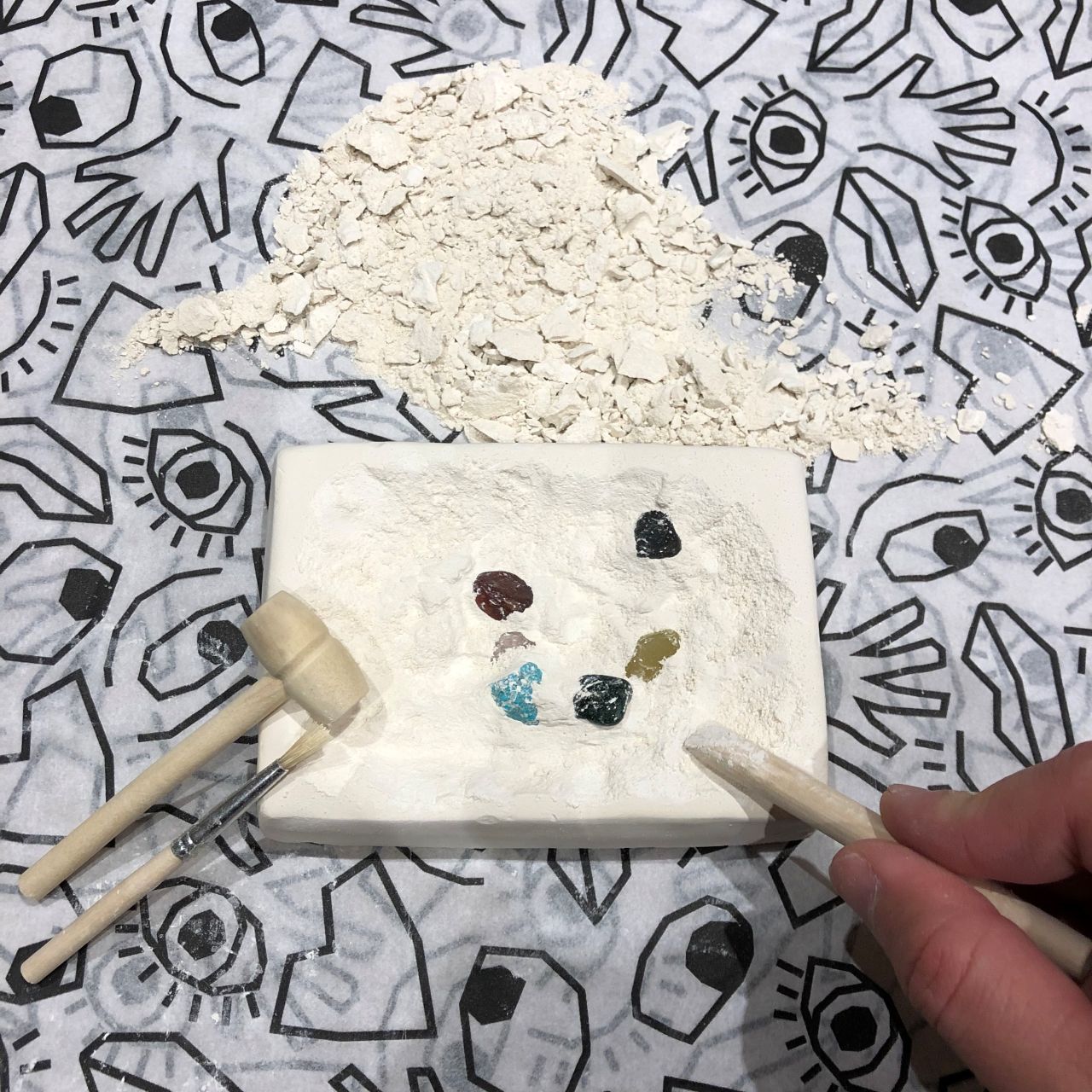 まずは、発掘キットと下に敷けるような大きめの紙を