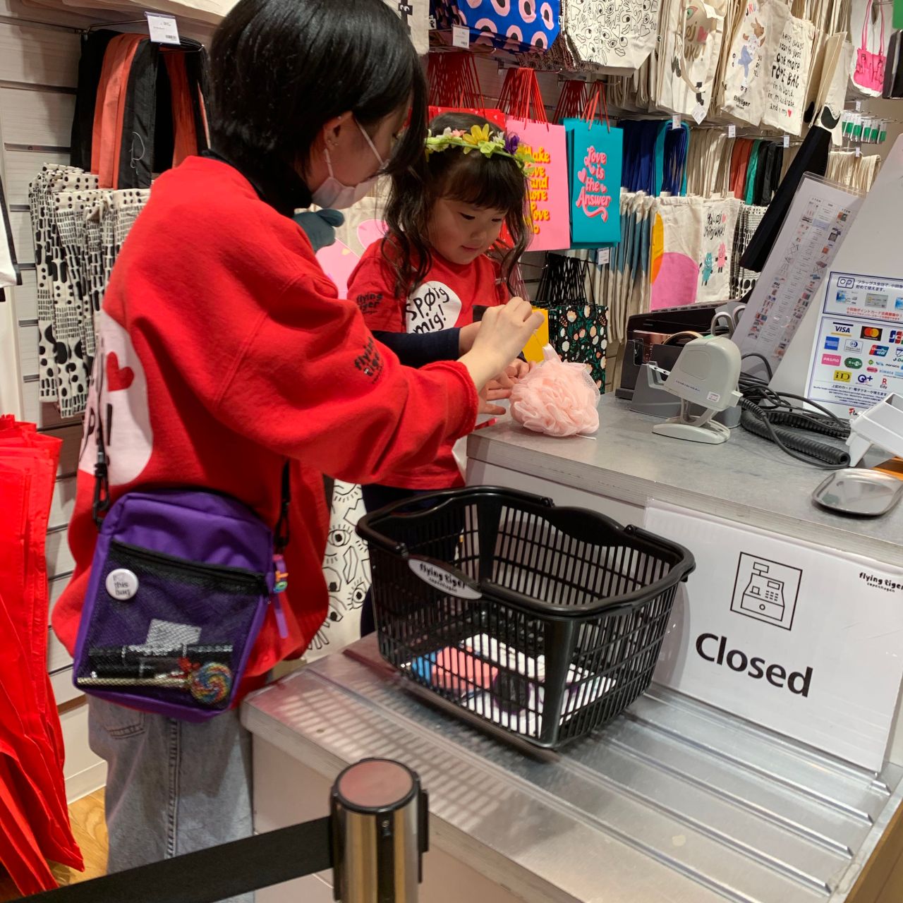 終礼をして、頑張って働いたお給料としてフライングタイガーで使えるお買い物チケットを差し上げます☆