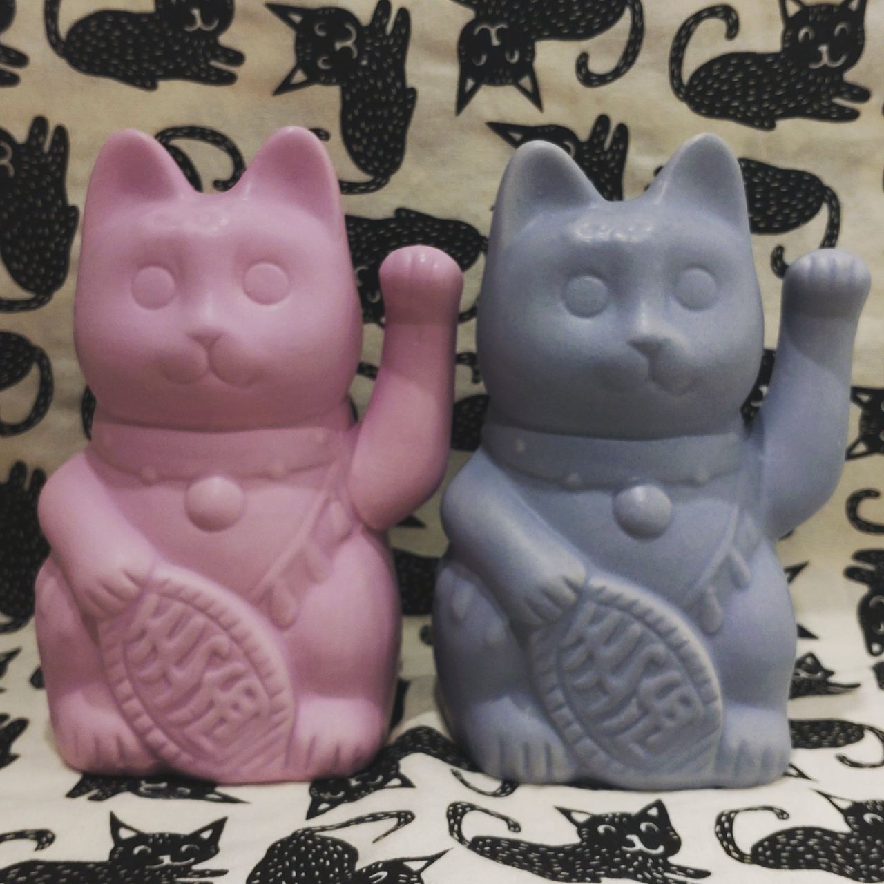 バリバリ渋めの写真でにゃあ•ω•ฅしてるこちらは新しく入荷した招き猫の置物…じゃなくて