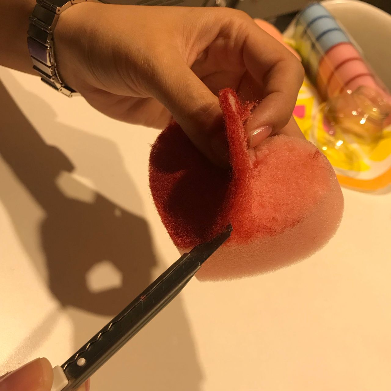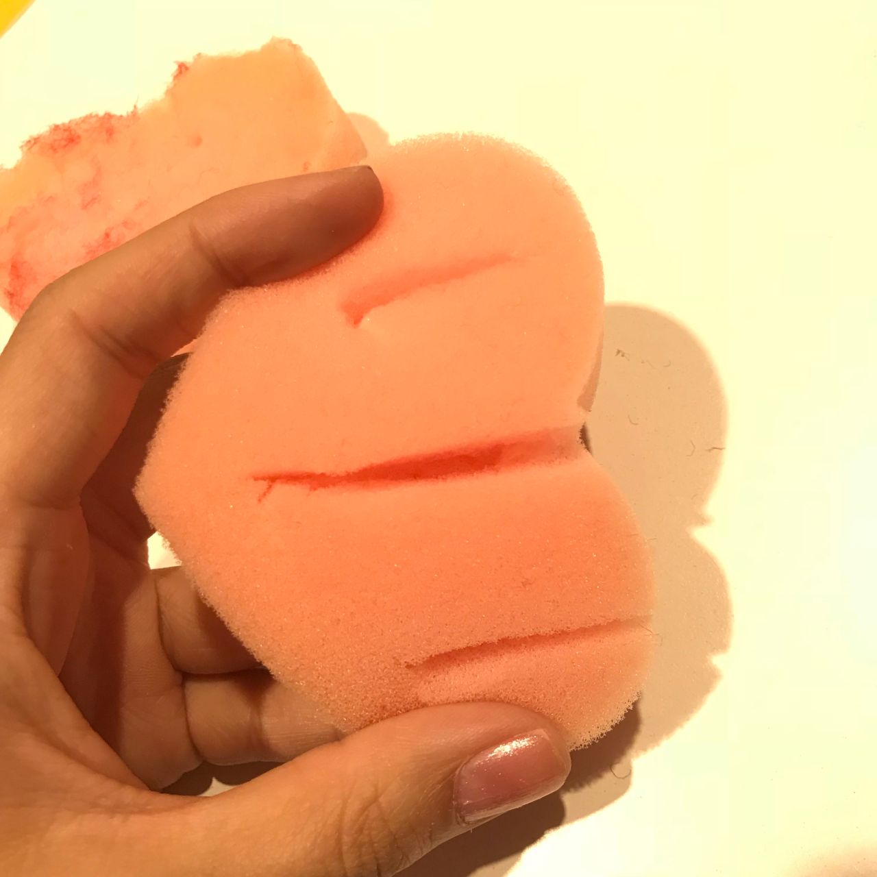 スポンジの柔らかい面に何ヶ所か切込みをいれます!