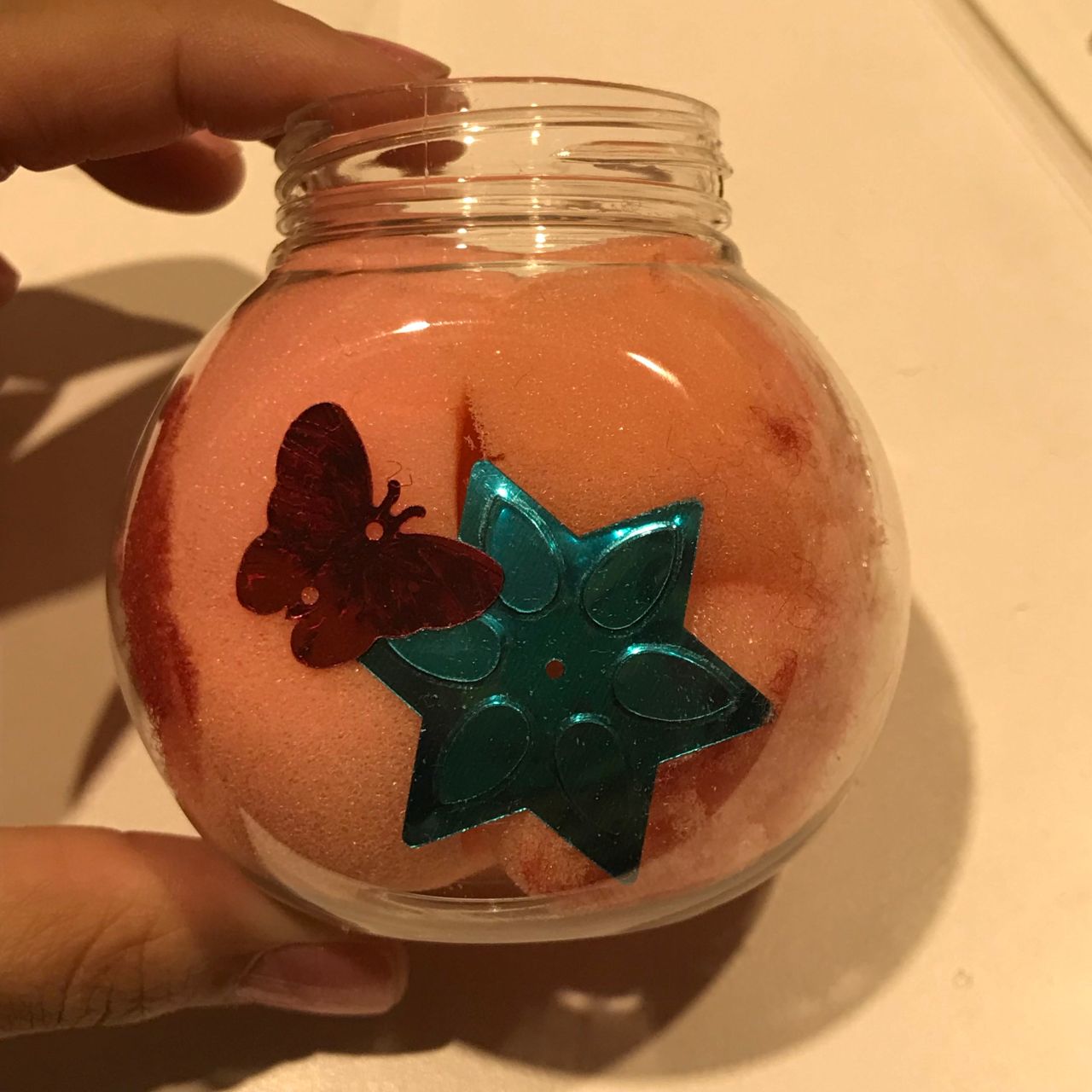 この時にスポンジとポットの間にスパンコールなどを入れると、出来上がりがとても可愛くなります♡♡