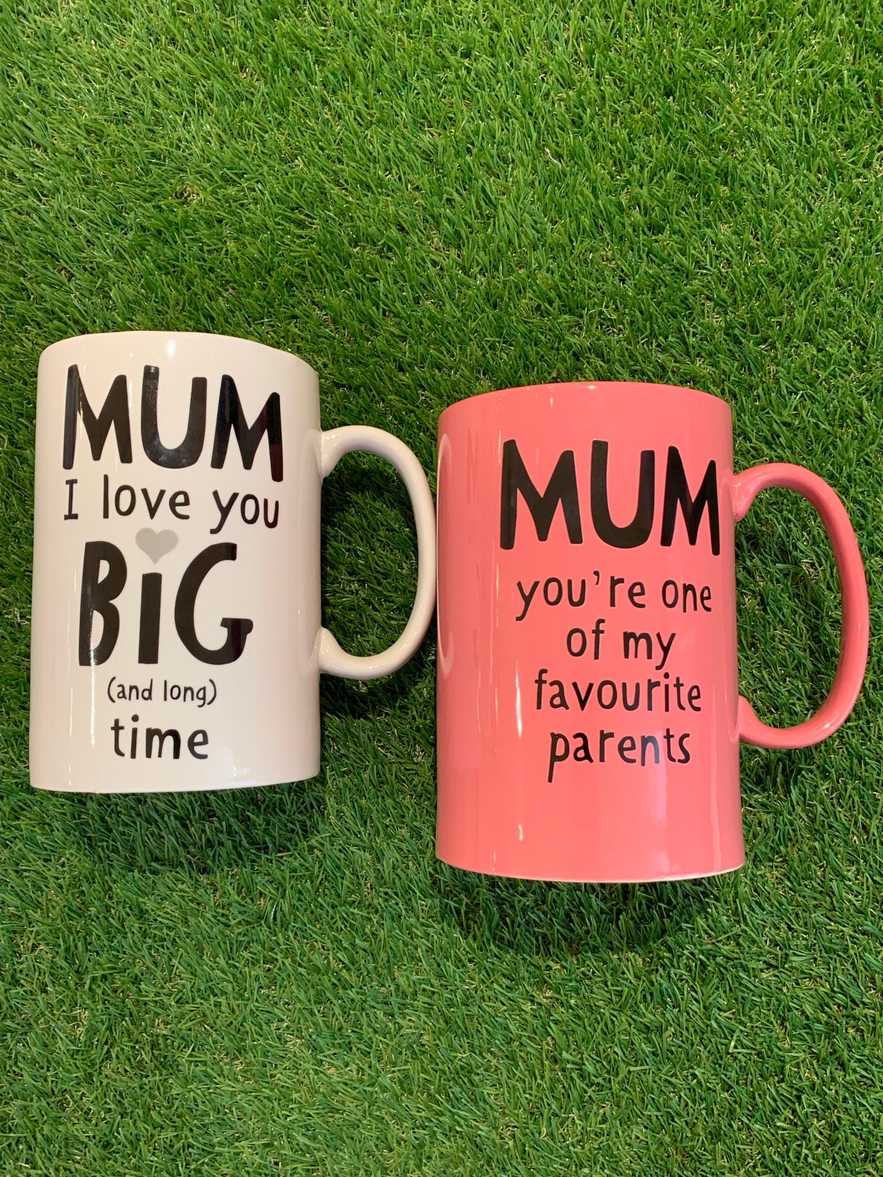 ビックリするくらい大きなマグに、お母さんの好きなお菓子などプレゼントを詰めてギフト・バスケットとして渡しても素敵♡