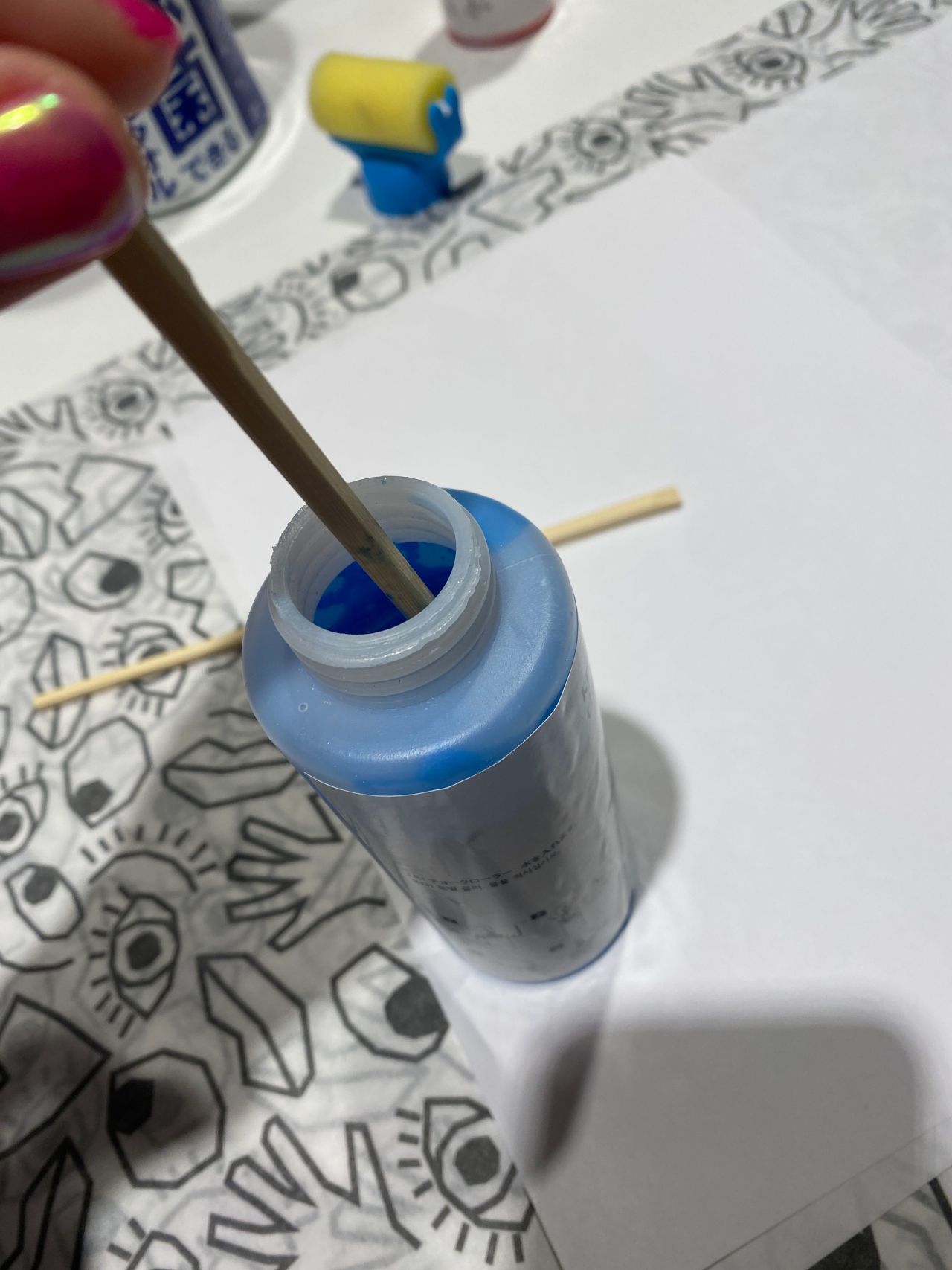 ここで混ぜるのが足りないと色が薄くなってしまったり、チョークが固まりとなって出てこなくなってしまうので