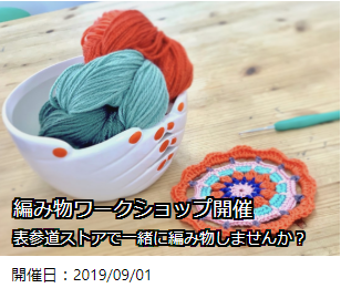 9月1日(日)に表参道ストアにて編み物のワークショップを開催致します!