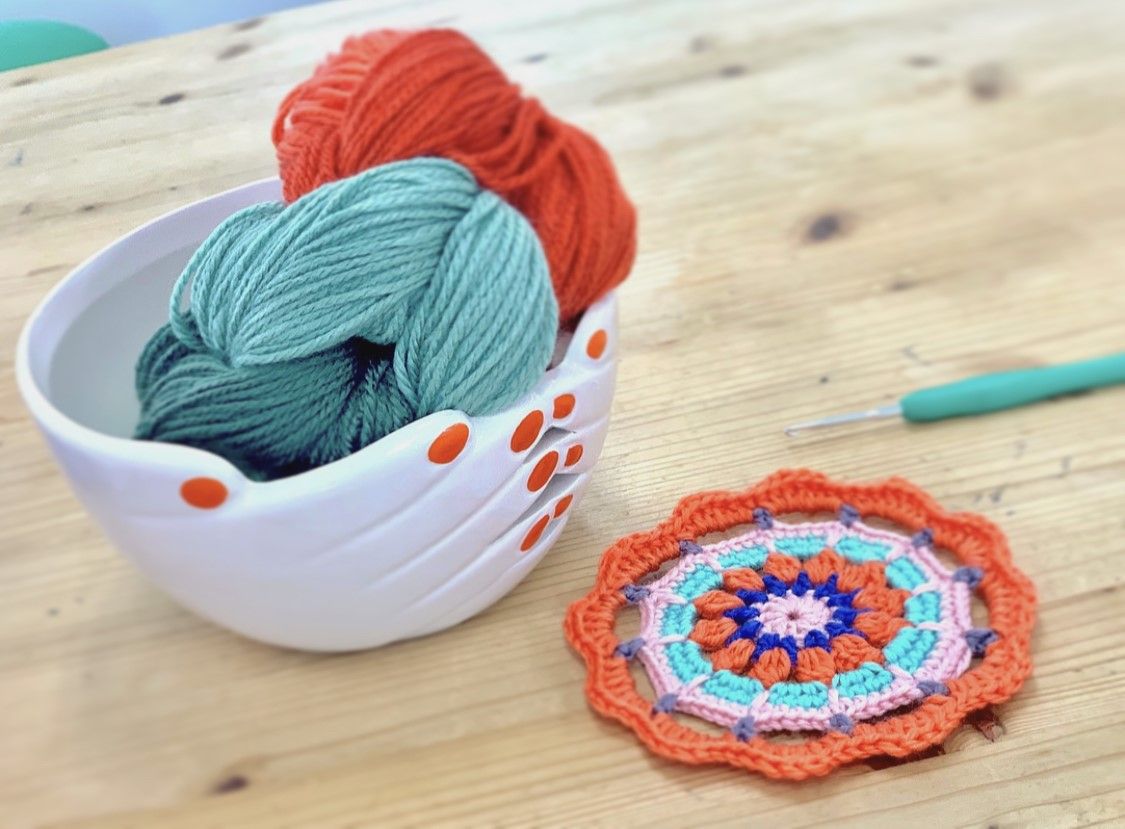 毛糸を使って、『コースター』を作るワークショップを開催します。