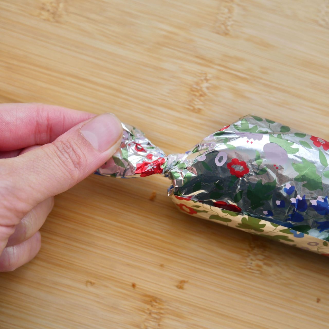 ・アルミホイルで巻いて両端をキャンディのようにねじります。