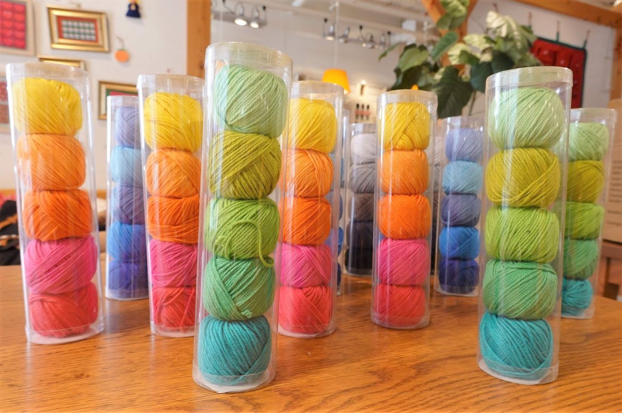 どの色も本当に可愛いので、参加頂いた皆さんには自分の好きな色の組み合わせの毛糸を選んでいただきました。
