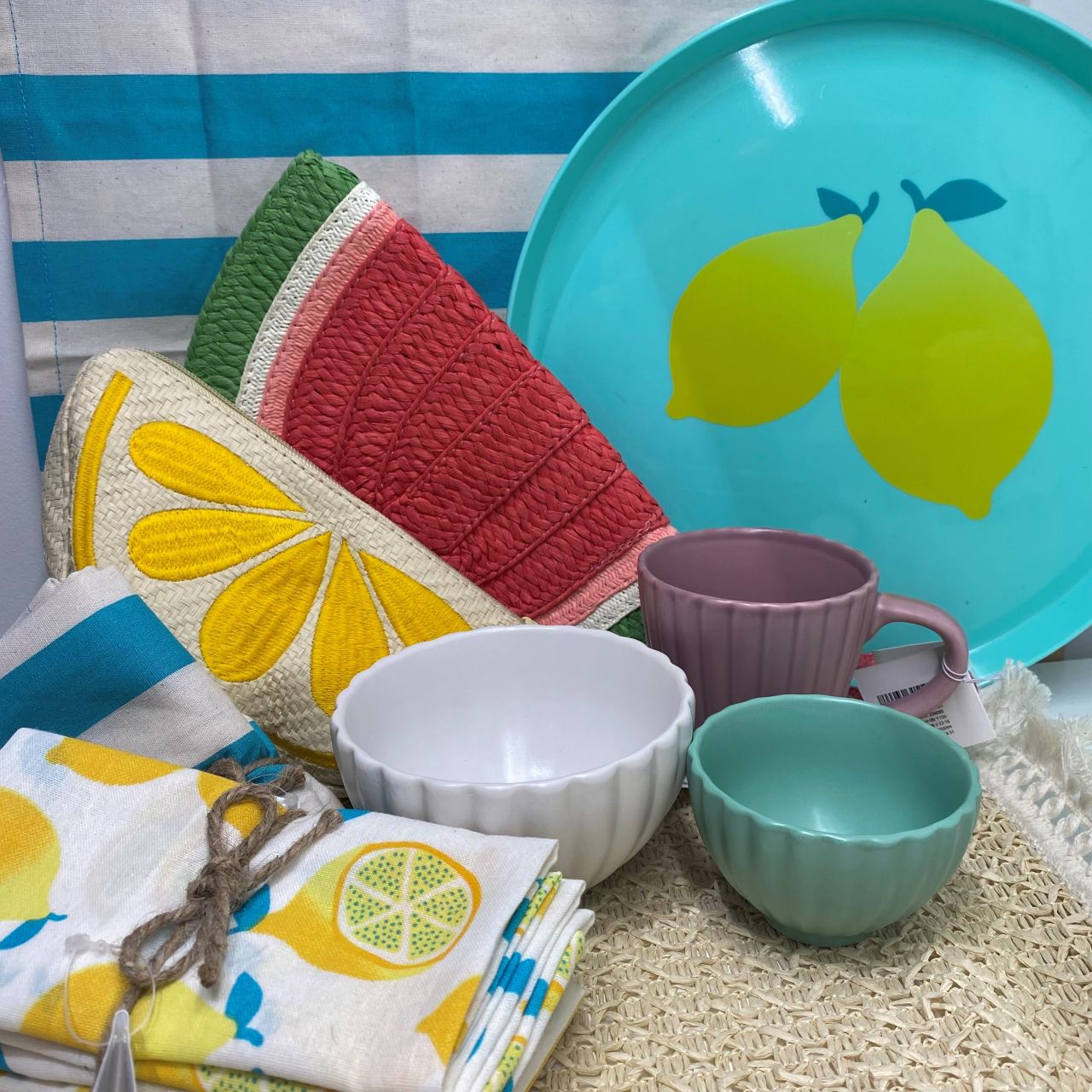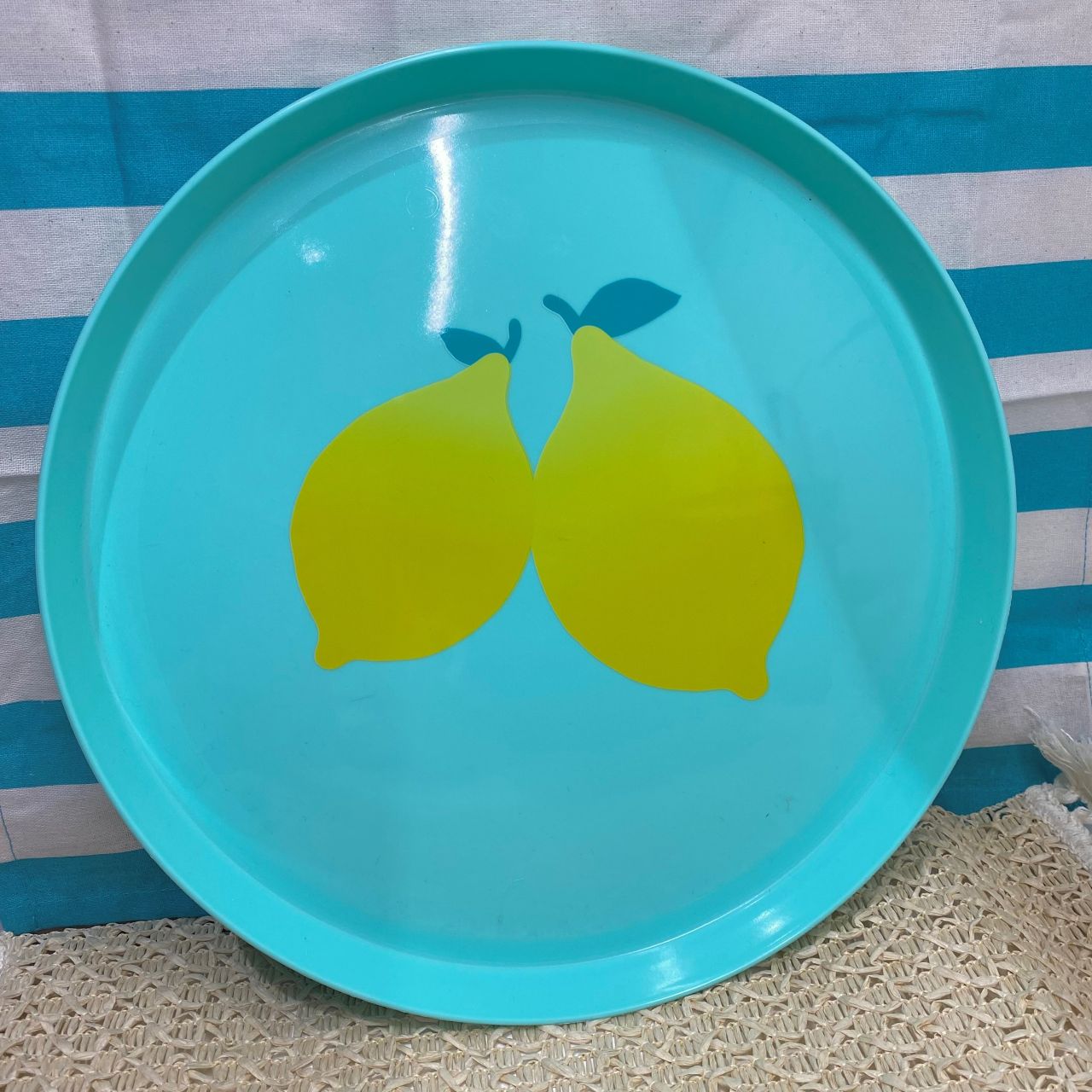 鮮やかなエメラルドグリーンにレモンのイラストが可愛いトレーです