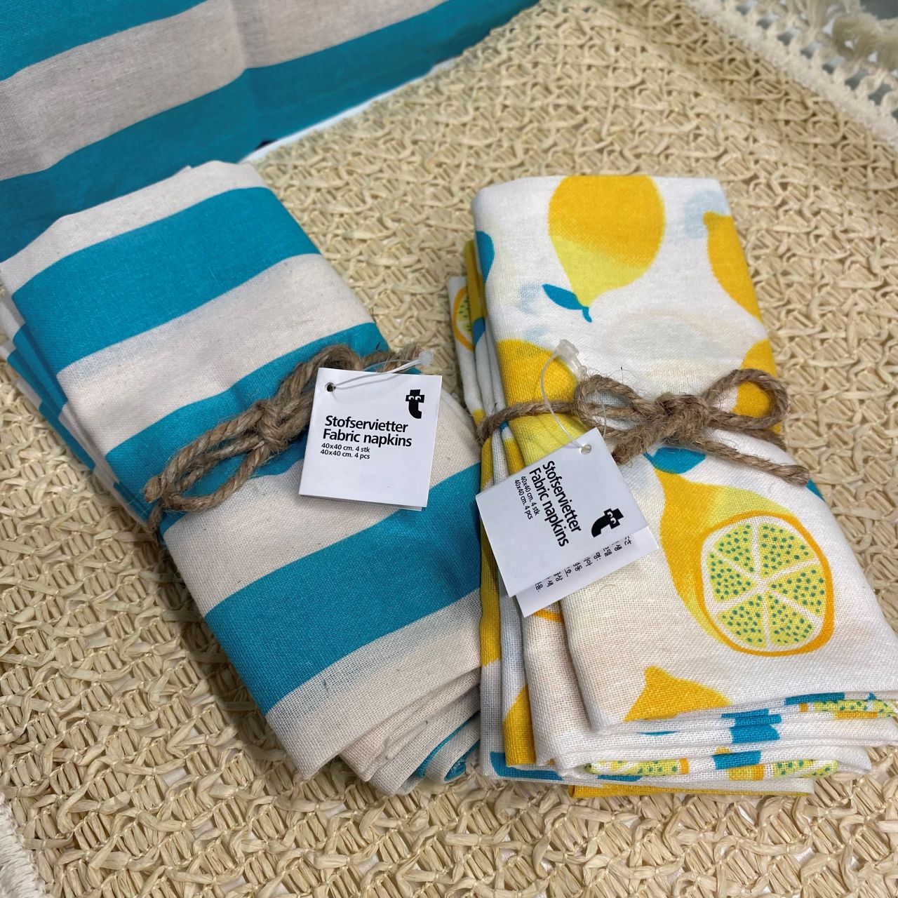 レモン柄と水色と白のボーダーの綿でできた爽やかなナプキンです☀