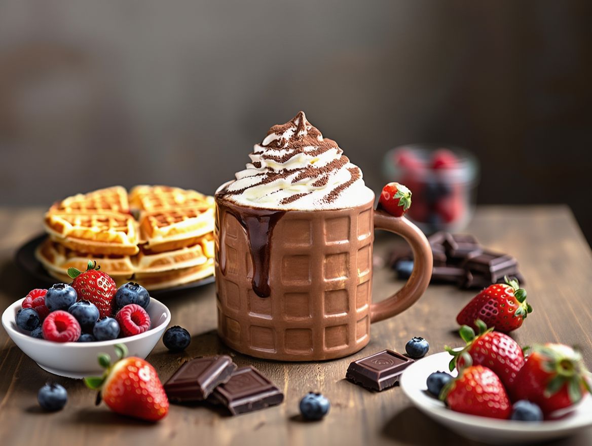 コーンにチョコがとろりと溶けた、アイスクリームとワッフル。