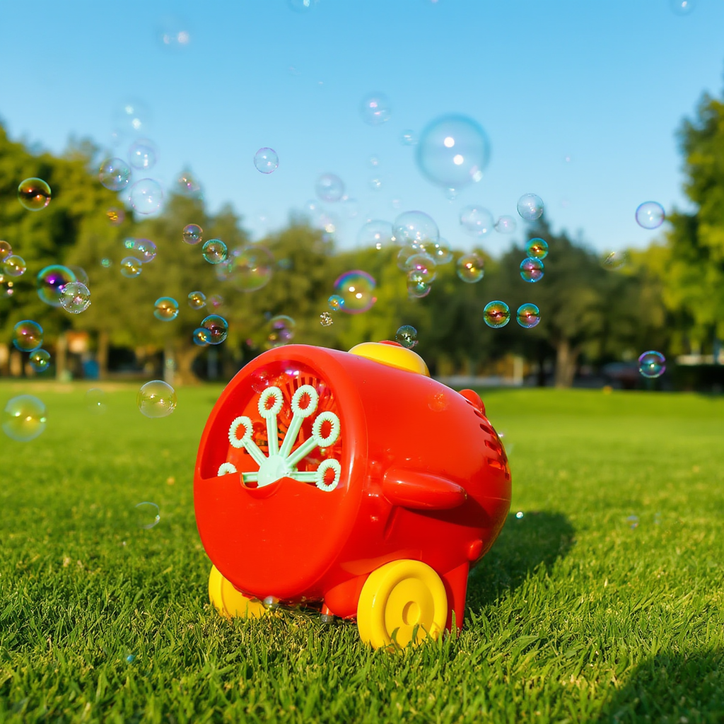 本体にシャボン玉液を入れて、ボタンを押すだけ。次々と広がるシャボン玉に、思わず夢中になること間違いなしの一品です。